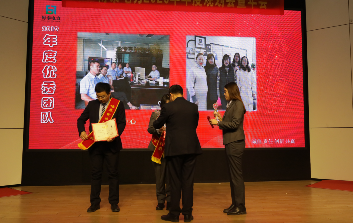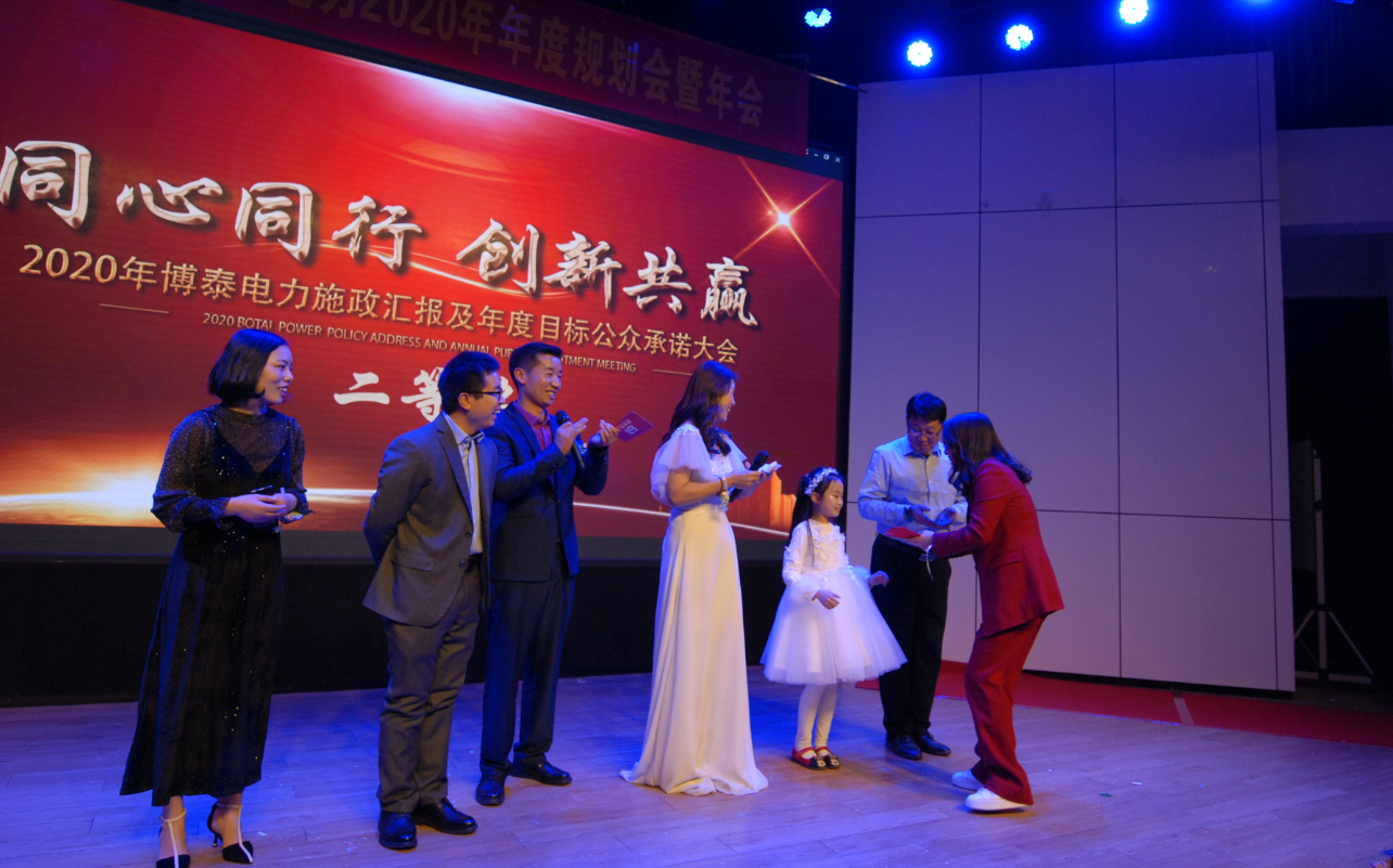 只有付出,才有收获,博泰电力过去一年取得的成绩,来自于博泰人的不懈努力。在这辞旧迎新之际,我们心怀感恩,为一年来对公司发展作出特殊贡献的伙伴们表示感谢。此次晚会共设有优秀员工奖、最佳新人奖、优秀团队奖、最佳贡献奖等多个奖项,共有20名伙伴及2个团队获奖,让我们向他们表示祝贺。获奖是一份荣誉,更是一种鼓励,2020年愿大家再接再厉,再创佳绩。