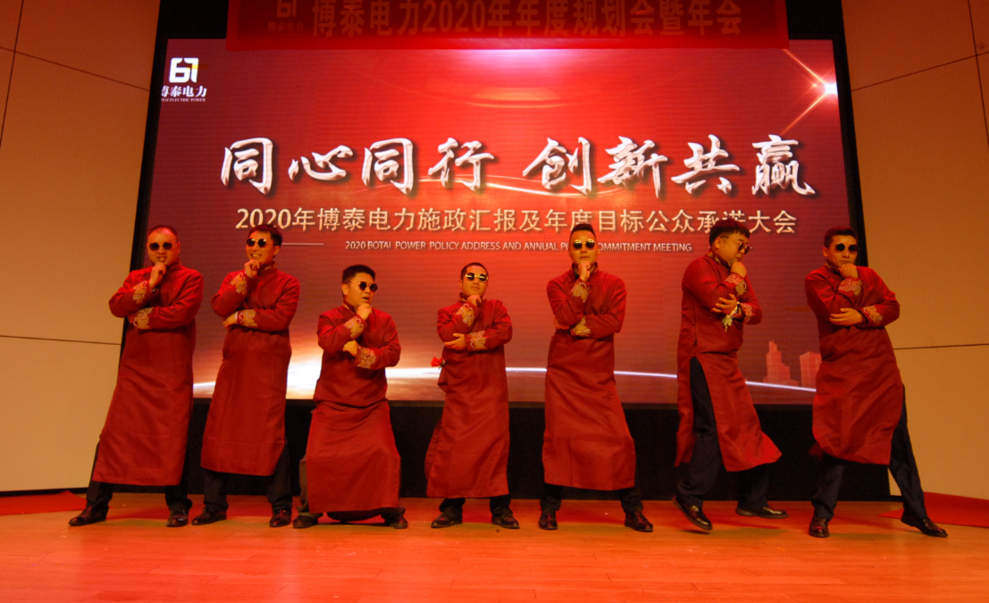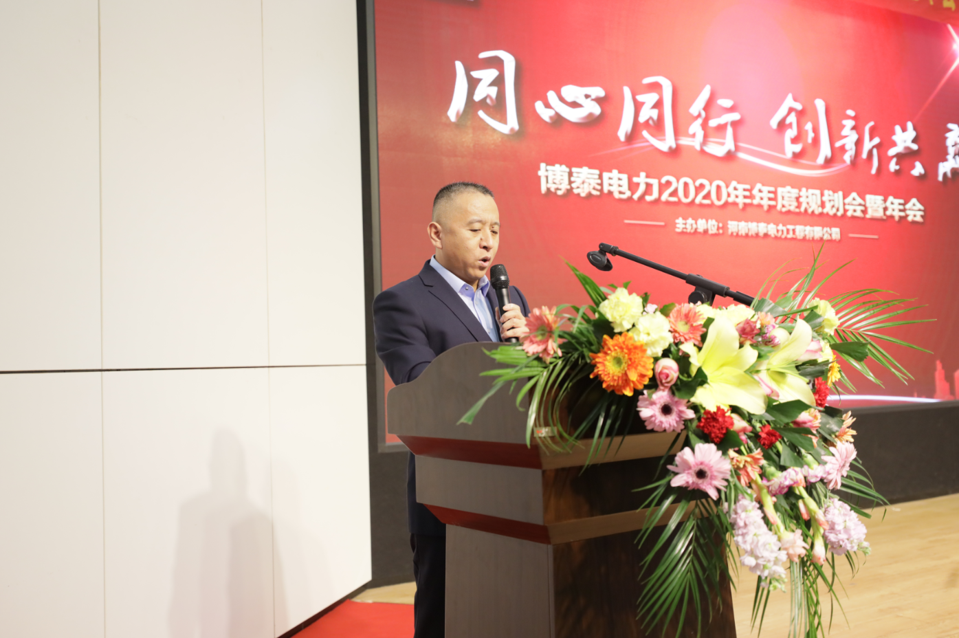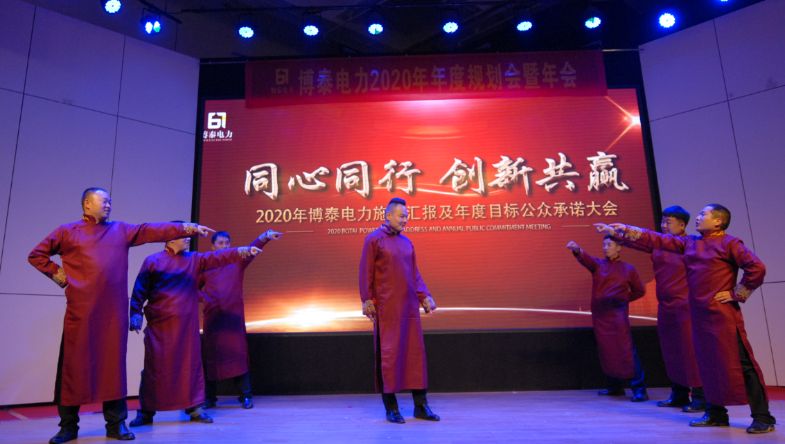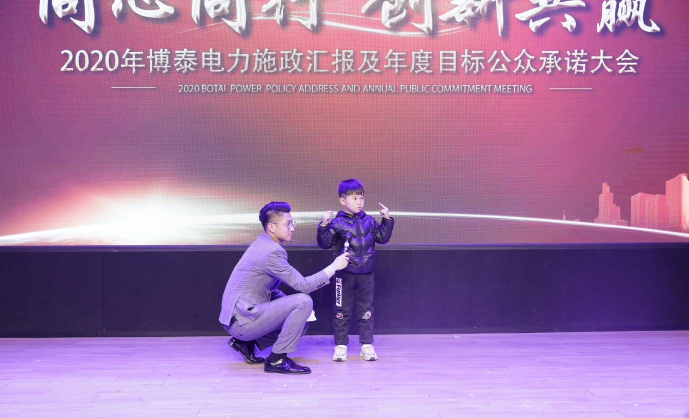 “面对2020年的巨大挑战,我们要一如既往、信心满满、激情满怀,‘金戈铁马闻征鼓,只争朝夕启新程’,我深信在未来的征途中,我们必将所向披靡、满载而归。2019年的博泰电力惊喜无数,2020年的博泰电力必将无数惊喜,我坚信,博泰电力的明天会因在座各位的努力而更加精彩辉煌。