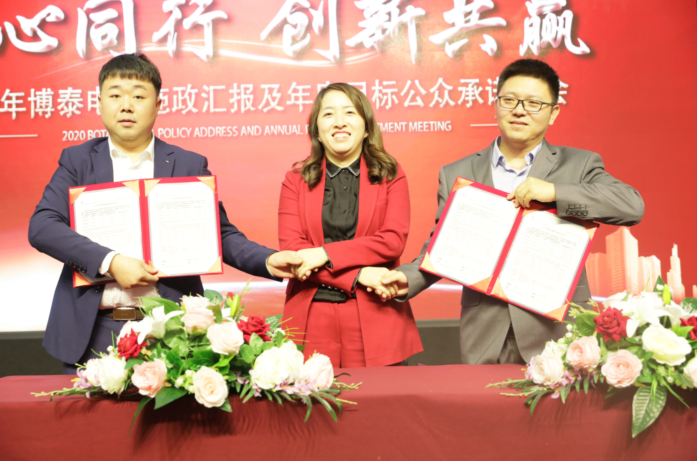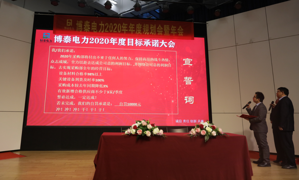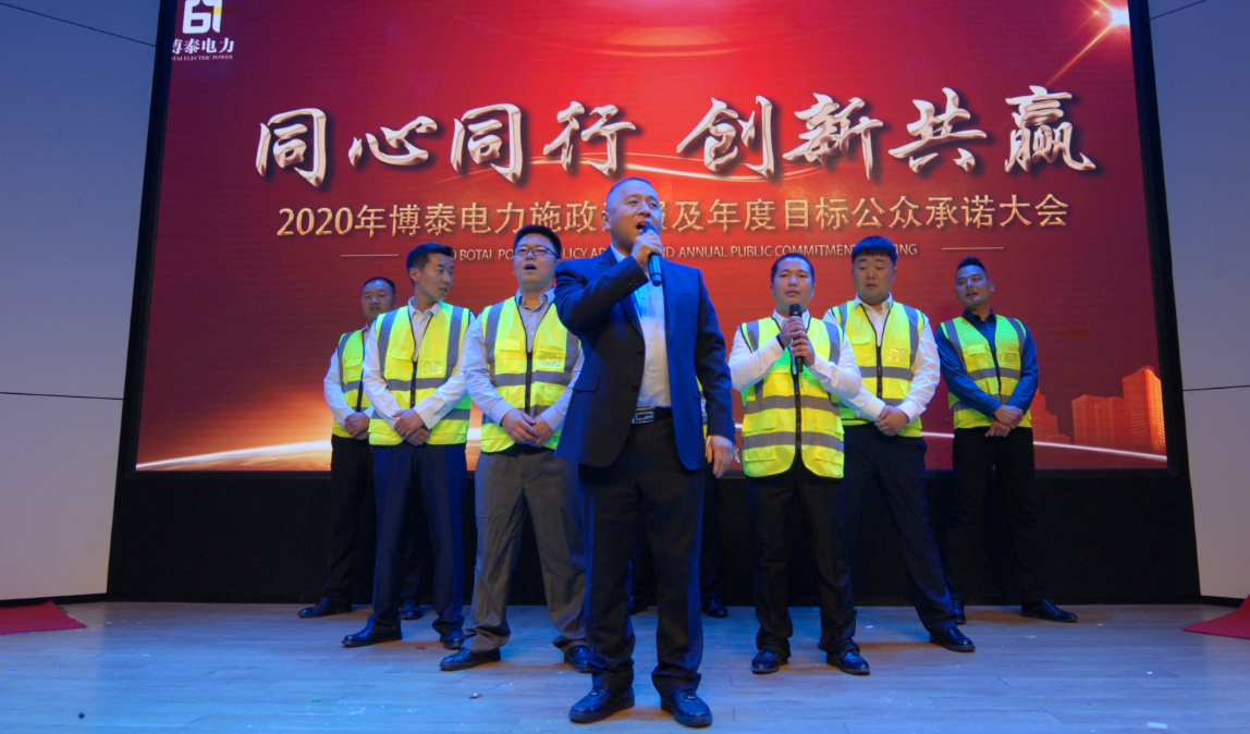 面对2020年的巨大挑战,不囿于现状,敢于自我超越,才是企业长久繁盛的秘诀。过去的种种荣耀,都只是新一年传奇再续的澎湃基调,博泰电力各个部门今天站在更高的起跑线上,通过最激动人心的宣誓环节发表宣言,展现团队风采,并信心满满地签署年度指标军令状,同心同行,共同开启新的伟大征程。