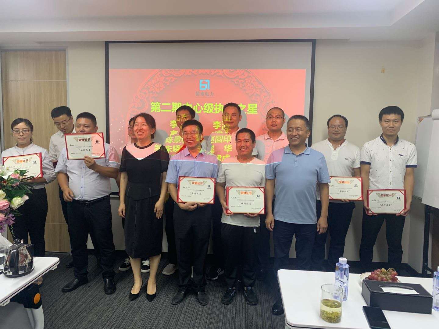 员工是企业的根基,优秀员工是企业制胜的法宝,正是他们不懈的努力和无私的奉献,才换来了博泰电力的不断成长。为鼓励先进,激励后进,在公开、公正、公平的前提下,通过考核、投票等各种有效方式选出了6名优秀员工代表和2个优秀部门,颁发了“执行之星”、“改善之星”、“最佳新人奖”、“最佳业绩奖”、“最佳回款奖”、“最优秀团队”等各种奖项,另有多名员工获得优秀员工荣誉。