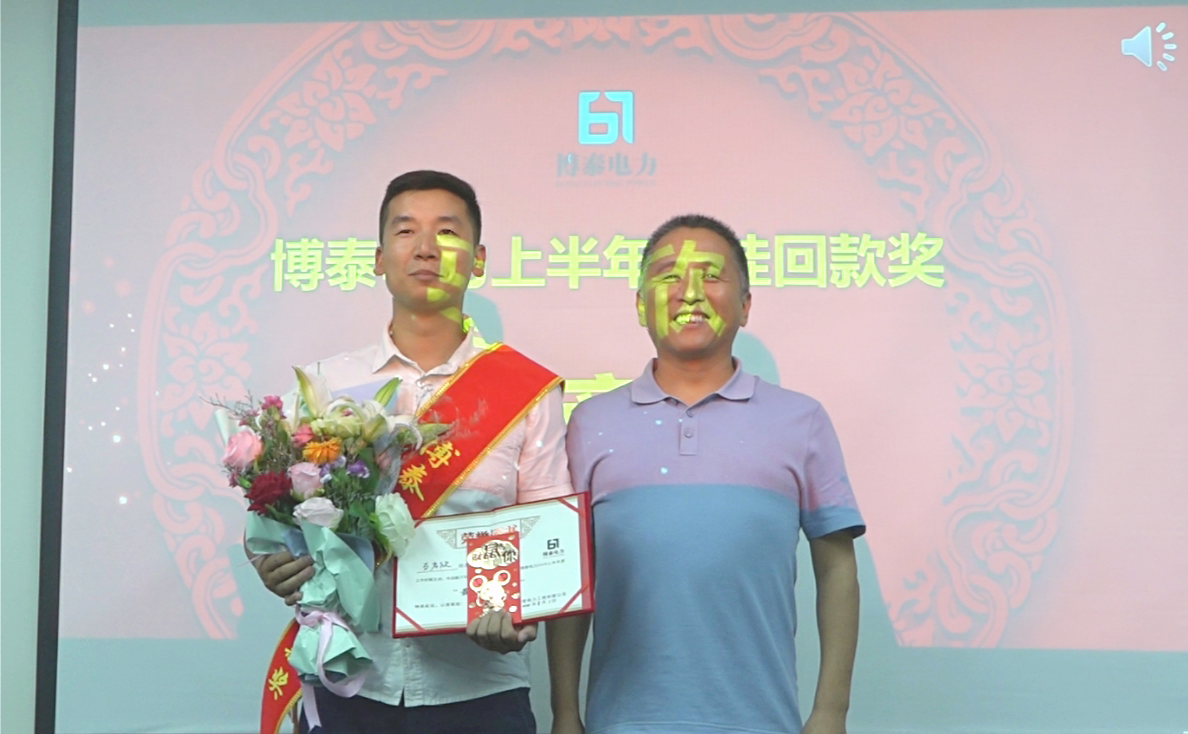 感谢他们对博泰事业的热爱以及对公司发展作出的巨大贡献,他们是博泰最宝贵的财富,希望受表彰的优秀员工,在今后的工作中发挥模范作用,再接再厉、全力以赴、争创佳绩。也愿和谐、互勉、共同进步的气氛长存;让企业文化扎根在每一位员工的心中,让我们携手博泰电力共同成长,祝愿博泰电力的明天更美好!