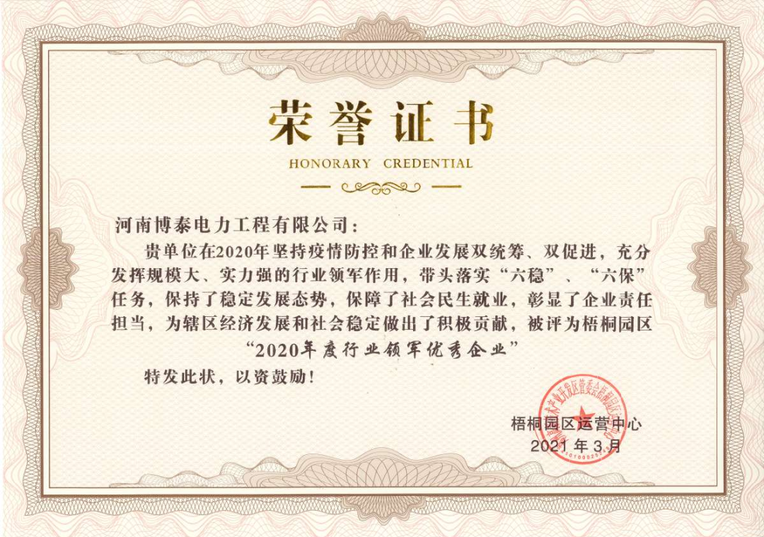 2020年对博泰电力是极不平凡的一年,是公司处于改革创新的关键一年,然而一场突如其来的新冠疫情对市场造成了严峻的考验。博泰人上下齐心,外防疫情、内谋发展,始终秉持着“诚信高效、团结进取、品质优良、售后完善”的经营理念,追求工程品质,提供卓越服务,为顾客打造优质的工程,最大限度满足客户需求,取得了优异的成绩。