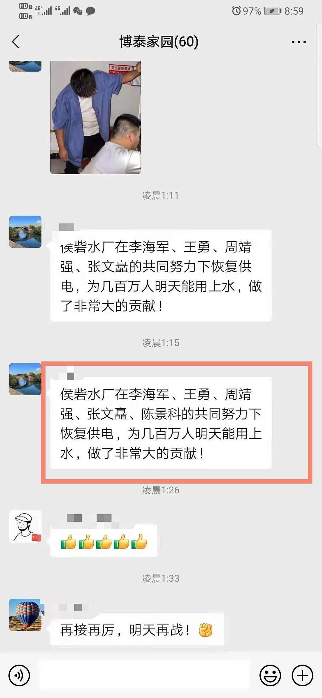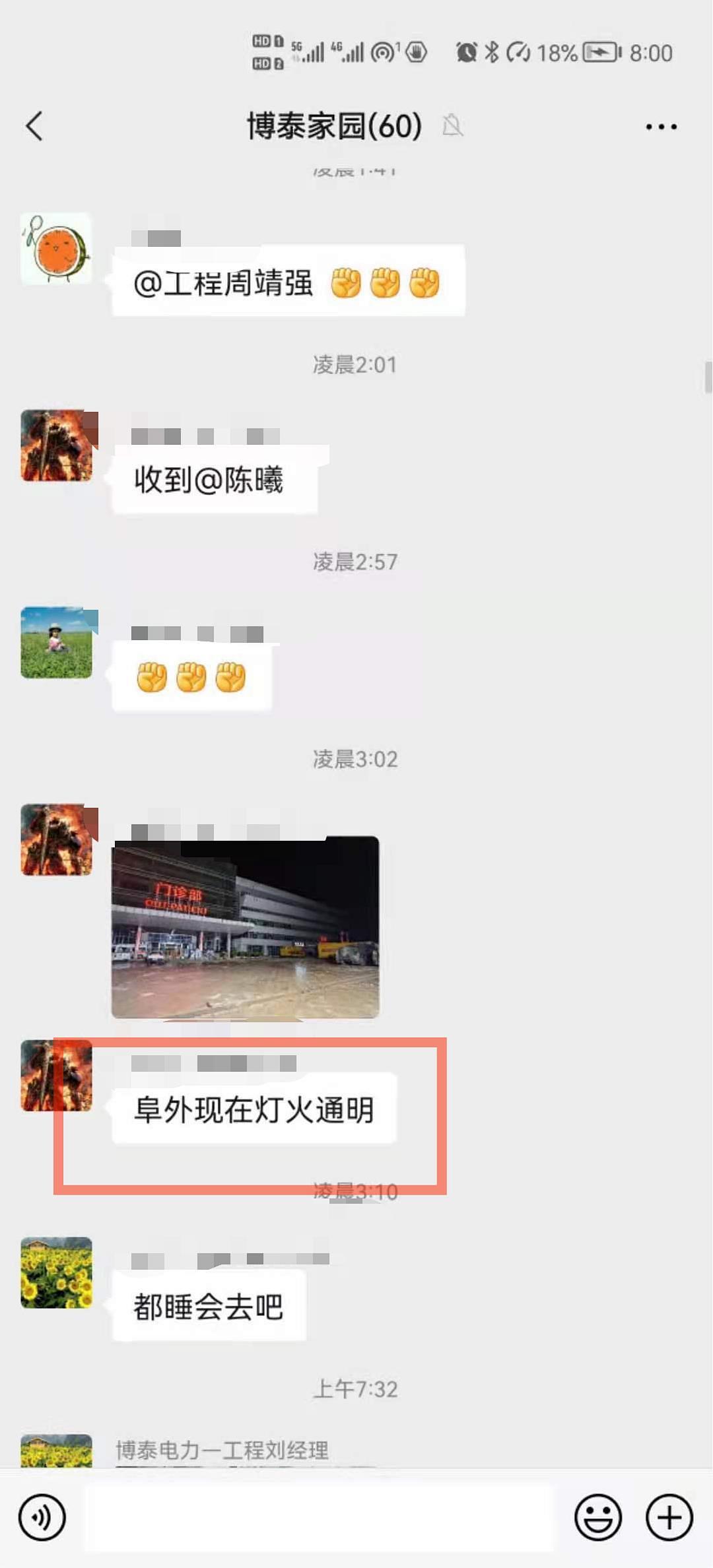 在这千余人的抢险大军中,博泰人始终坚守在自己的岗位上,有的排查各种安全隐患,有的进行电力抢修,有的运输各类抢险物资等等,每个人都在为这场战役做着自己力所能及的事情,每一个冒雨前行的人都是这场极端天灾的最美逆行者。