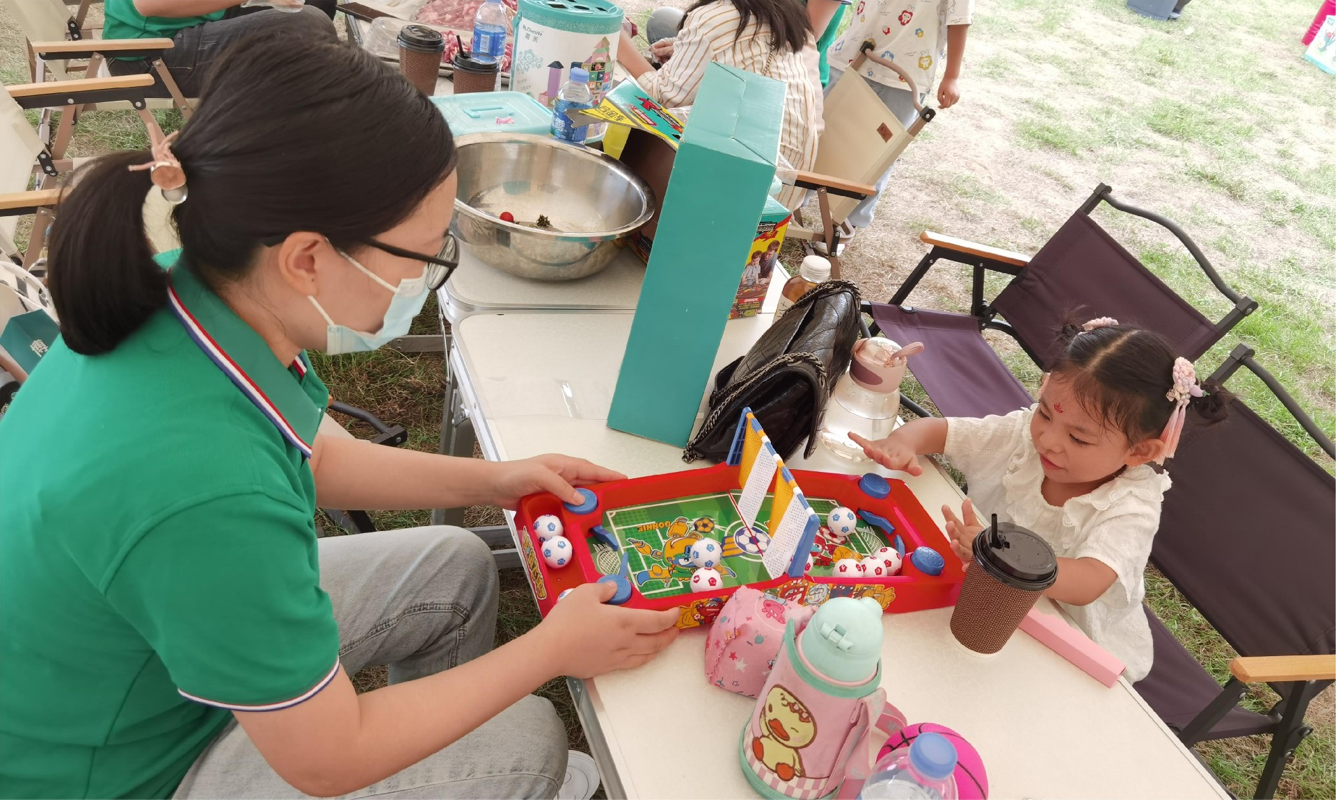 家长带着孩子们穿梭于不同的活动场地,碰碰球、水边钓鱼、彩虹滑道等各种童玩游戏,现场气氛十分活跃,无论是孩子们还是家长们,无不欢欣鼓舞,热血沸腾。