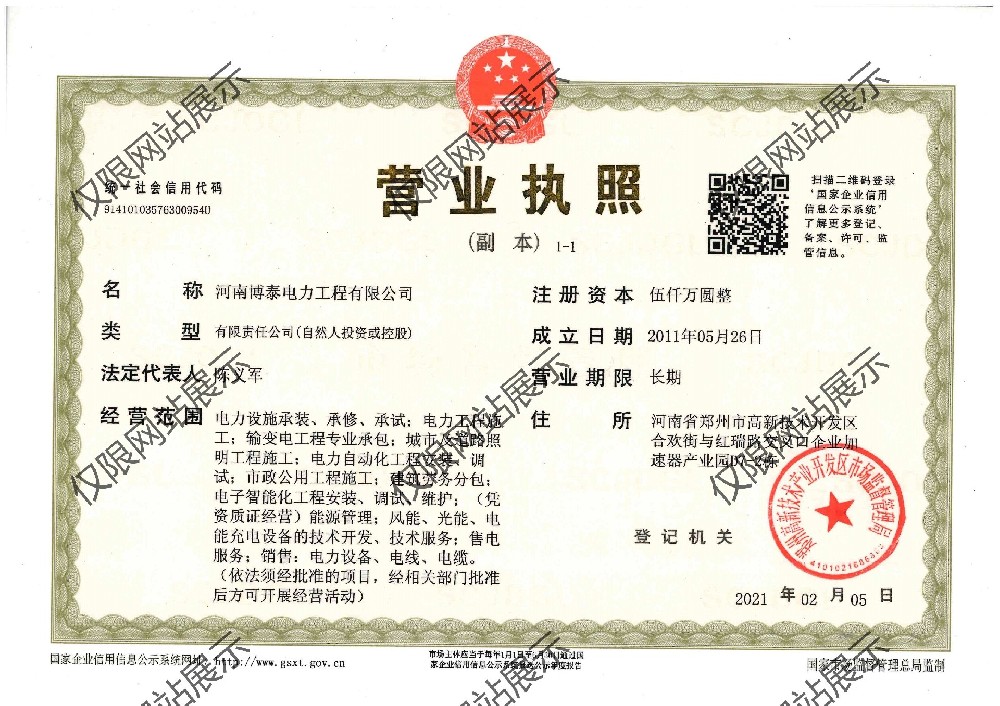 博泰电力营业执照副本