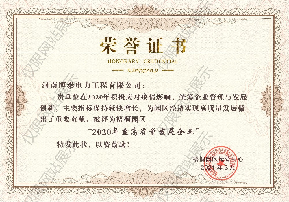 高质量发展企业证书