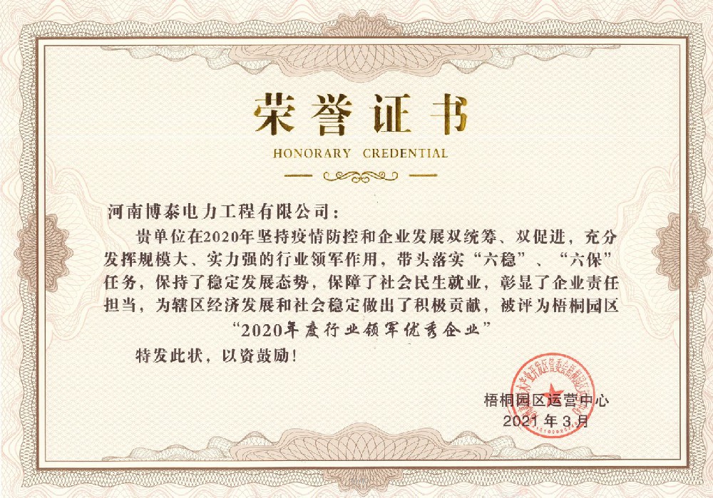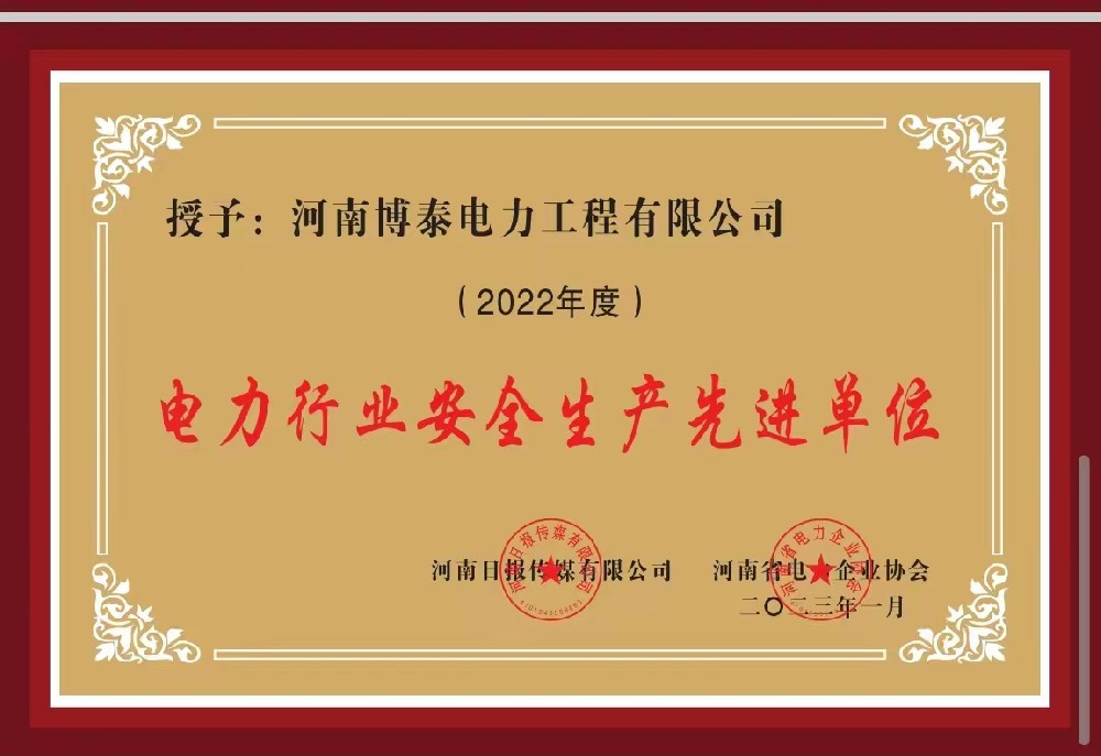 电力安全生产先进单位荣誉证书