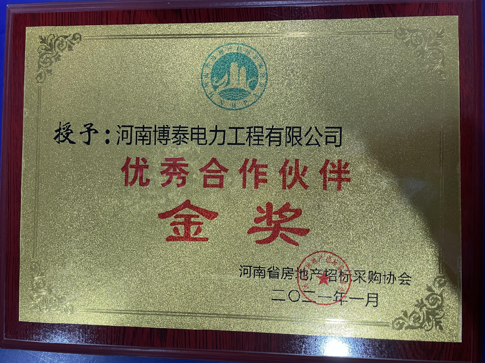 地产优秀合作伙伴荣誉证书