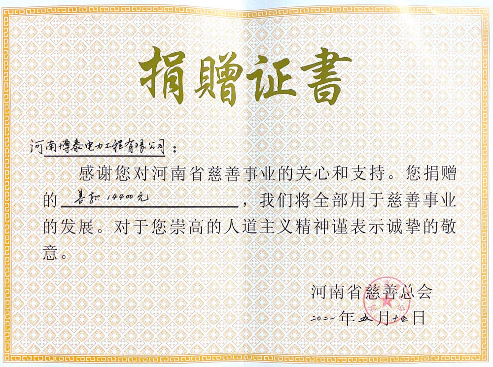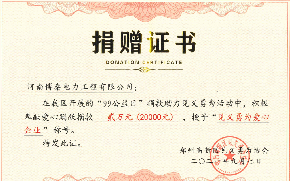 见义勇为捐款证书