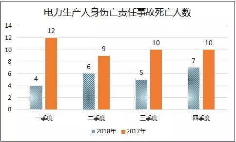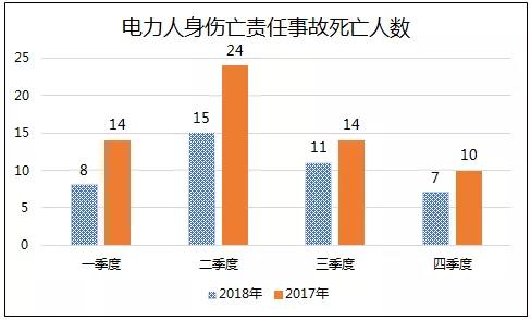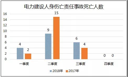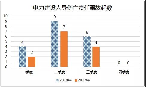 二、发生电力建设人身伤亡事故18起,死亡18人,起数同比增加5起,增加比例38%,死亡人数同比减少3人,下降比例14%。需要说明的是,近两年第四季度均未发生电力建设人身伤亡事故。
