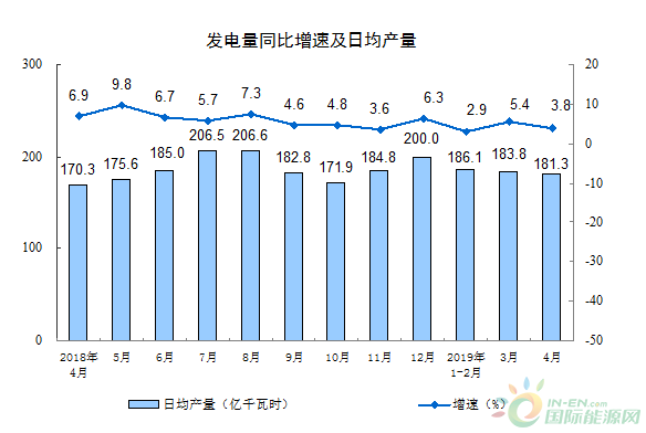 统计局:2019年4月全国发电量同比增长3.8%