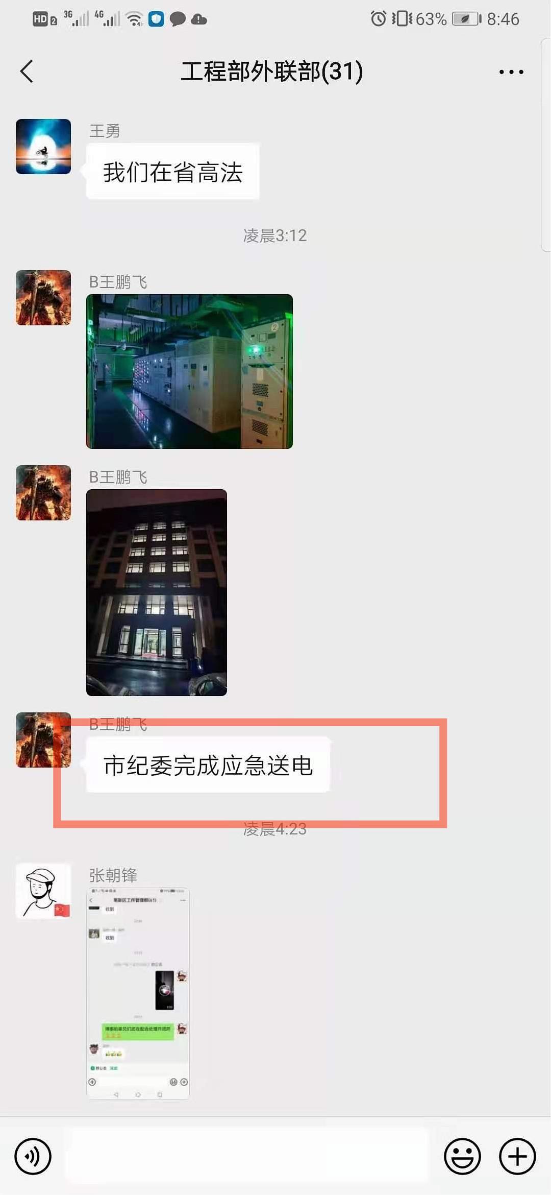所有停电的设施中,最严重的应该是医院停电。医院收治了大量的重症患者,停电造成很多医疗设施无法使用,从而让患者出现生命危险。时间紧迫,情况刻不容缓,当博泰接到通知,立即调动11辆发电车,紧急驰援郑大一附院河医院区、省医阜外医院、郑大三附院、郑州六院,组织全部工程人员,分成多个小组,全部都入到供电抢修的大军中。