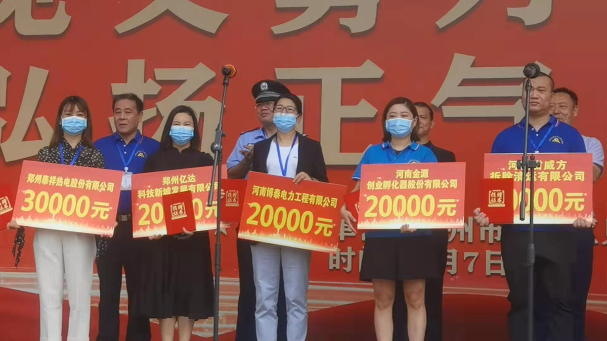 “7.20”郑州特大暴雨,对郑州的经济发展和人民生命财产造成了重大损失。博泰电力在拼尽全力抢修保电的同时,也积极为本次抗灾救险行动捐款、捐献物资等。我们的事迹也得到了社会的表扬,被郑州高新区见义勇为协会授予“见义勇为爱心企业”荣誉称号,这是对我公司的鼓励和肯定。