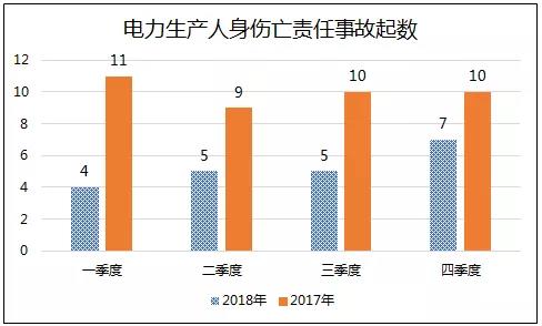 二、发生电力建设人身伤亡事故18起,死亡18人,起数同比增加5起,增加比例38%,死亡人数同比减少3人,下降比例14%。需要说明的是,近两年第四季度均未发生电力建设人身伤亡事故。
